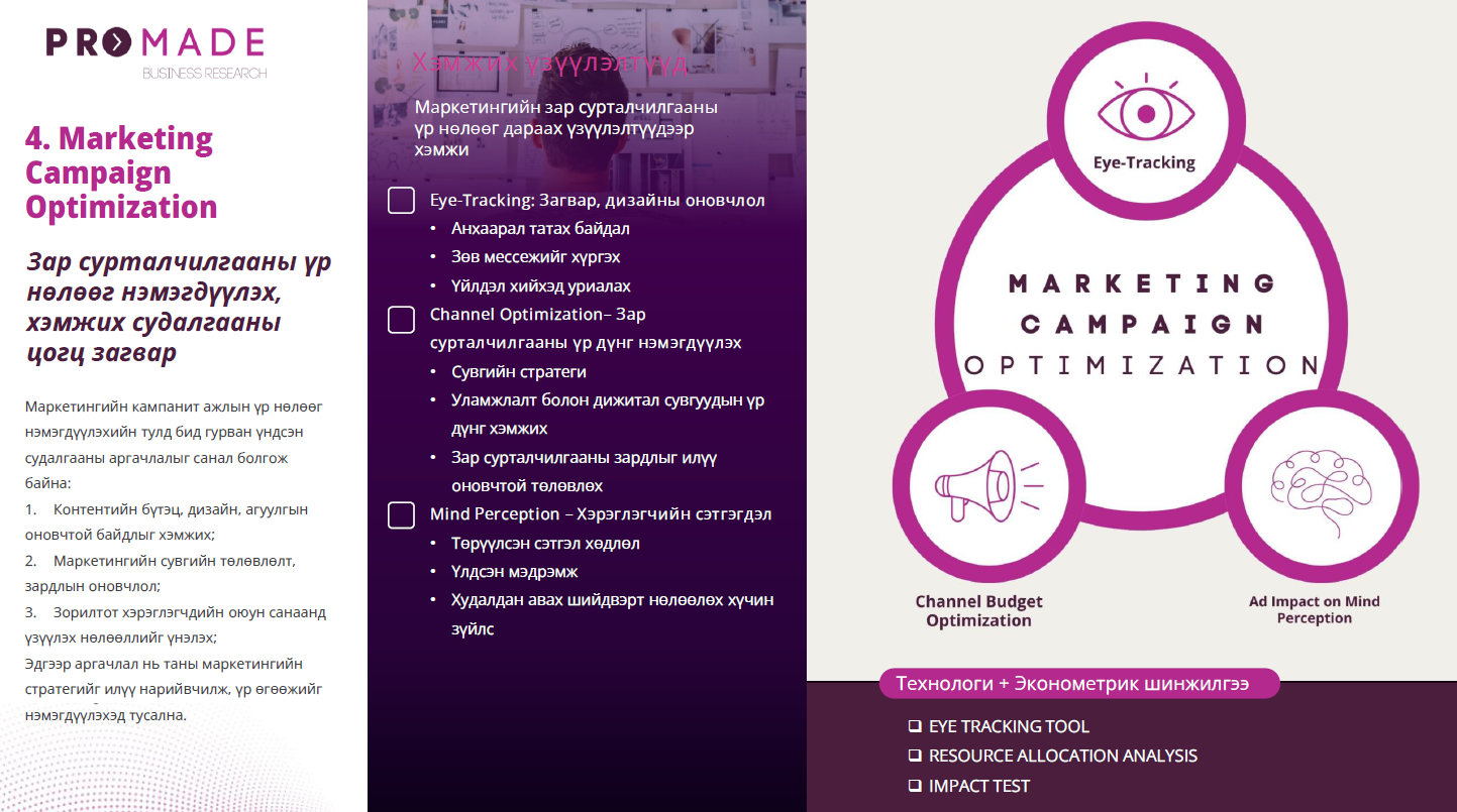 Таны бизнест цугларсан бэлэн дата өгөгдөл ба хэрэглэгчийн зан төлвийг сэтгэлзүйн гүнзгий түвшинд ойлгож, үнэ цэн бүтээе.